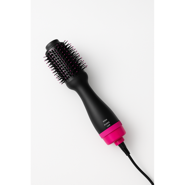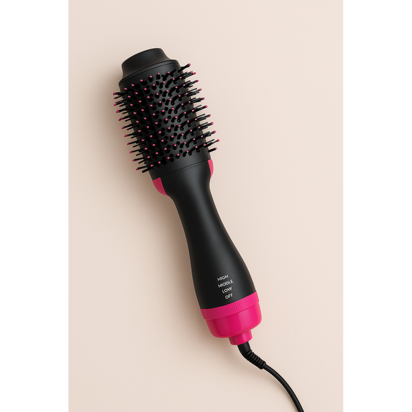 Este cepillo secador 2 en 1 transforma tu rutina capilar: seca, alisa y da volumen con un solo gesto. Su diseño rosa con acabados dorados lo convierte en un aliado elegante y potente que cuida tu cabello y realza tu estilo, cada día.
